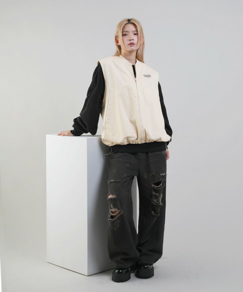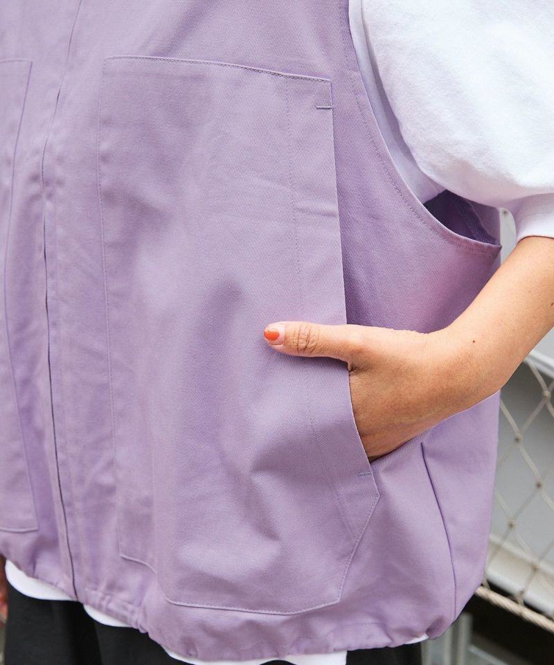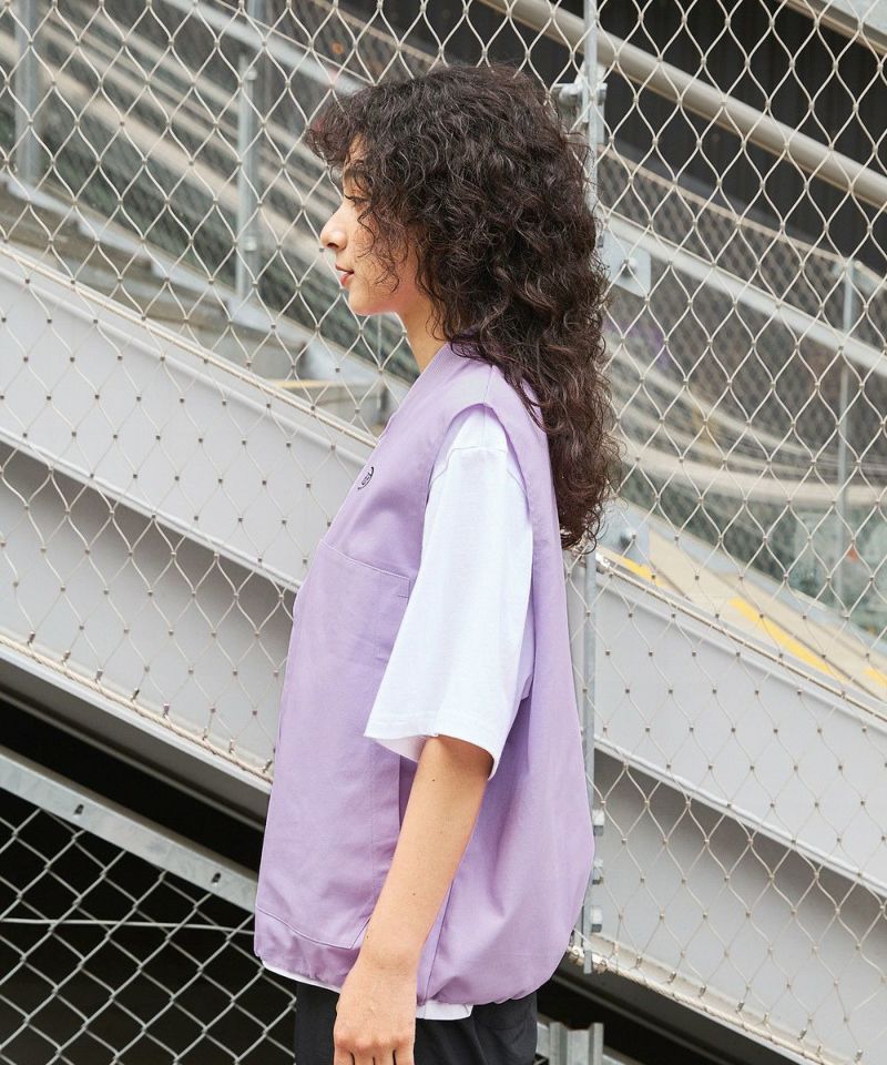 ワークテイストな雰囲気が今っぽいベストです。胸元に入ったブランドロゴの刺繍がさり気ないポイント。フロントサイドには大き目なポケットを配し、デザイン性と機能の両方を兼ね備えています。腕ぐりや身幅をゆったりと設計しているので、レイヤードしやすい適度なリラックスフィット。カットソーやシャツにレイヤードするだけでトレンドのスタイリングが完成する、一着持っていると便利なアイテムです。レディース、メンズ問わずお使い頂けるユニセックスアイテムです。