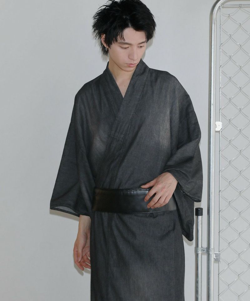 シンプルで洗練されたデザインの浴衣に、アクセントになるPUレザーの帯。